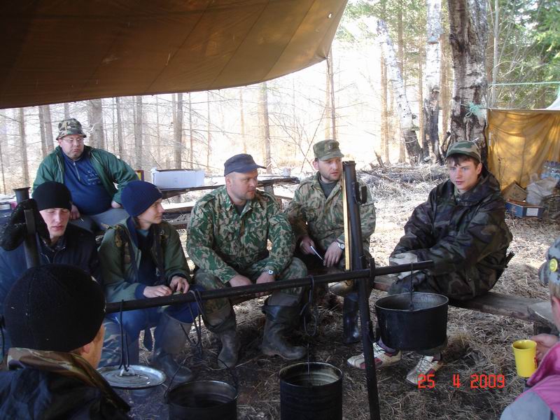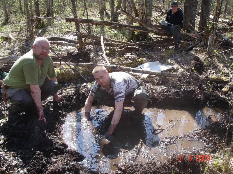 По приезде выбрали место стоянки базового лагеря, где должен быть подъезд, вода и дрова. Главными в выборе места являются: максимальная приближенность к месту поисковой работы и наличие воды для приготовления пищи. Все остальные условия жизнеобеспечения решаются опытными руками поисковиков. После того, как обустроили палатки, костровое место, полевую баню, штаб, подняли отрядный флаг и испробовали по первому котелку костровой каши, можно было приступать к поиску.