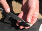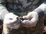 Приехав на место и расспросив хозяйку об обстоятельствах дела, мы принялись за работу, но не были уверены, останки чьих солдат нам придется сейчас поднимать. После 50 см грунта пошли первые останки солдат. Каски, ремни, пуговицы со звездой, валенки, свитер, карандаши, хлорницы, зажигалки, патроны в патронташе, гранаты и многое другое, найденное при останках, свидетельствовало о том, что это останки солдат РККА, а захоронение "боевое", когда солдаты стаскиваются во всем, что есть и временно санитарно прихораниваются. Но главными находками этого боевого захоронения были два смертных медальона, найденных при них и практически прочитанных на месте, благодаря начальнику "поисковой экспедиции "Долина" – Бородачевой Людмиле, работавшей с нами в эту Вахту Памяти.