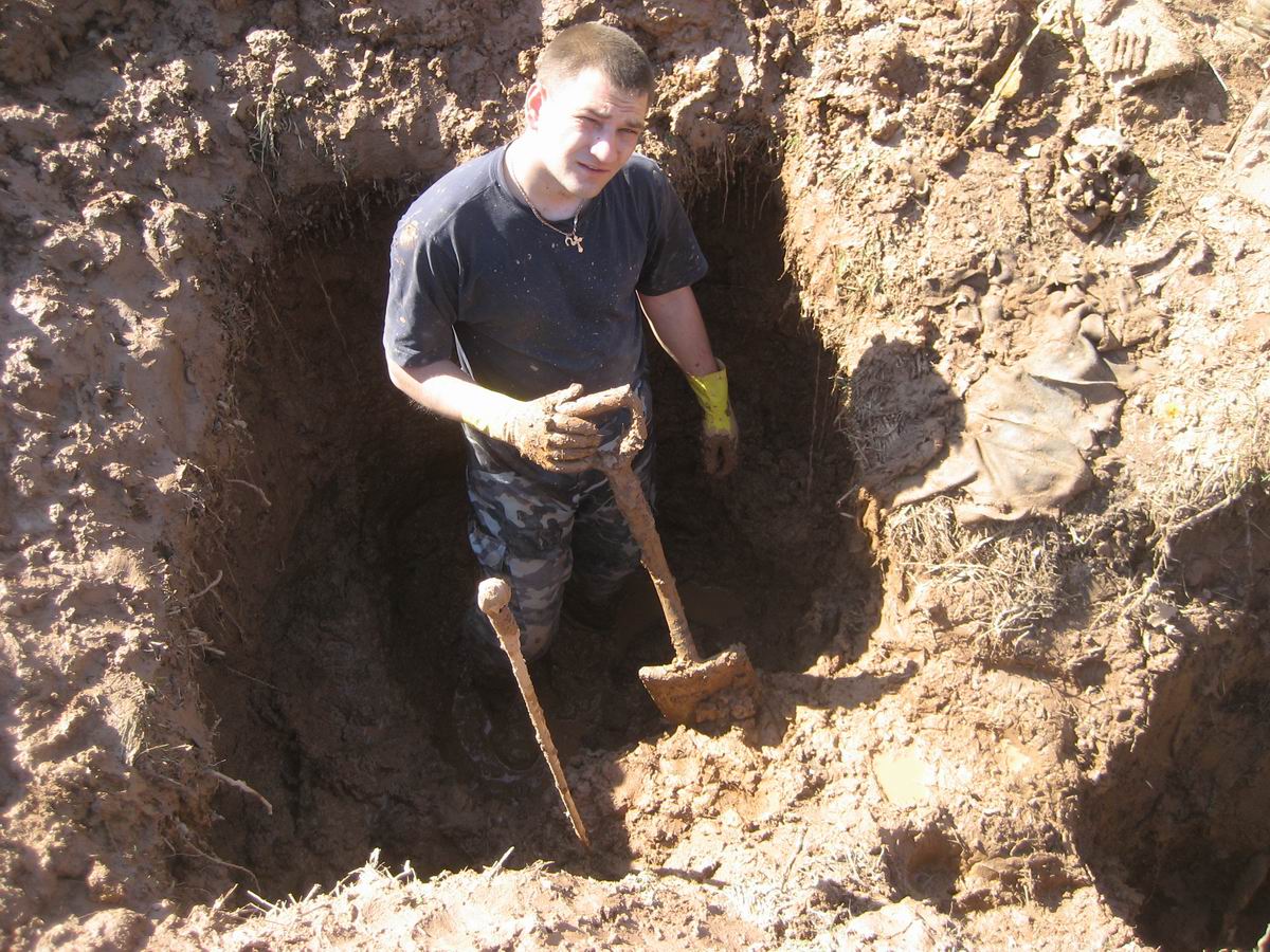 Еще сложнее было обнаружить воронку, в которую в послевоенные годы заставляли деревенских школьников сваливать найденные останки солдат. По словам того же дяди Толи, этим занималась и его сестра, которая как и все после уроков выполняла эту трудовую повинность – цепляла на палку череп за черепом (всего их было 185!) и переносила в большую яму. И здесь помогли старые ориентиры – бывшее кладбище и боевая дорога, по которой когда-то шли танки. С трудом, но их нашли, так что, по словам поисковиков, работы на этом месте будут непременно продолжены.