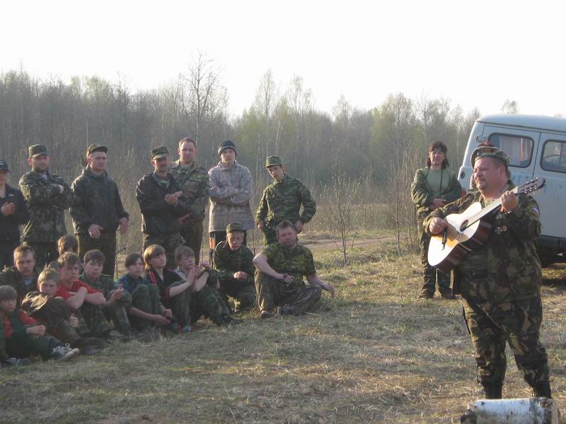 Вечером в поисковых лагерях весело - и песни, и бесконечные разговоры у костра. Удивляться не нужно: сюда приезжают люди разного возраста, в основном молодежь, и им, работающим в очень нелёгких условиях, нужно хорошо отдохнуть, отрешиться от дневных забот и волнений. Но утром, взяв щупы, лопаты и миноискатели, облачившись в камуфляж и резиновые сапоги, все они, растянувшись длинной цепочкой, уйдут в глубину лесов и болот, пойдут туда, где принимали последний бой их прадеды, земляки и соотечественники.