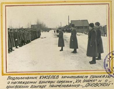 Приказом Верховного Главнокомандующего тов. Сталина от 24.02.1944 г. всему личному составу бригады объявлена благодарность, а приказом от 26.02.1944 г. бригаде присвоено наименование Дновская.