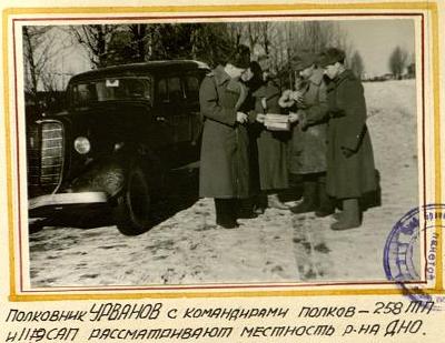 Действиями танковой группы, овладевшей гор. Дно, находясь непосредственно в боевых порядках, руководил зам. к-ра бригады по стр. части подполк. Кудрявцев М.А.