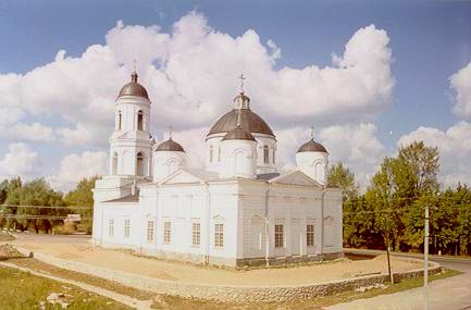 Главный - холодный - храм квадратный в плаке, без алтарных выступов. Интерьер разделен четырьмя столбами, которые несут широкий двенадцатиоконный барабан центрального купола, Окна барабана высокие с полуциркульными перемычками и наличниками в виде аркады. Купол первоначально был гладким и имел форму слегка "приплюснутой" полусферы, однако после реставрации 1994 - 1995 годов ок стал более плоским с ребристой поверхностью. Его венчает глухой "фонарь" с восьмиконечным крестом, стоящим на сфере: Купола малых глав невысокие, уплощенные, под ними - глухие окна, по шеста в каждом барабане Они оформлены так же, как и окна центрального барабана.
